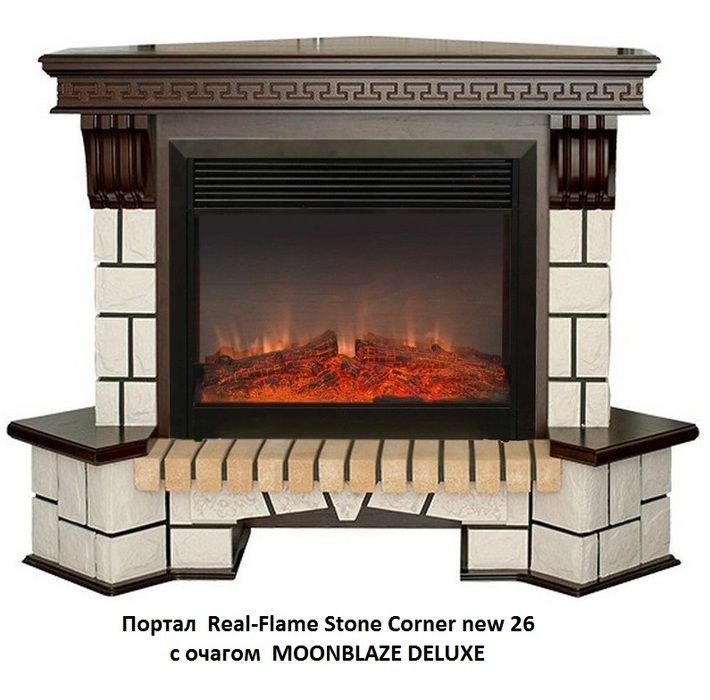 Real-Flame (Реал Флейм) Stone Corner new 26 с очагом Moonblaze представляет собой уже готовый комплект из электрического очага и декоративного обрамления. Разработана модель торговой маркой Real-Flame, которая позаботилась и о безопасности, и о высоком качестве своего изделия. Такой камин имеет ряд неоспоримых преимуществ, в числе которых легкая установка и использование, отсутствие необходимости в дымоходе и регулярном обслуживании.